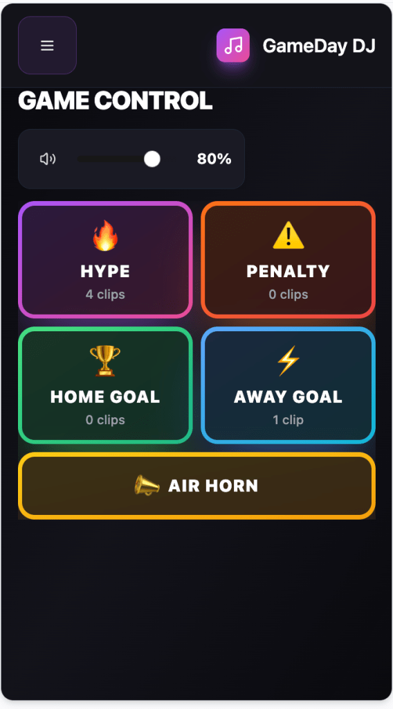 GameDay DJ is a simple mobile web app designed for scoreboard operators, team parents, and volunteers who manage music during youth and amateur sporting events.